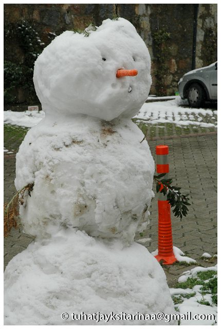 Koko talvea harvemmin täyttyy täälläkään lumetta viettää. Lumi saapuu Istanbuliin tammi-helmikuussa, mutta ei koskaan enemmäksi kuin pariksi viikoksi. Silloin alkaa lasten riemuviikot. Koulut sulkeutuvat ja liikenne hiljenee. Ne ketkä uskaltautuvat liikenteeseen luistelemaan täyttävät uutiset kolari-kuvilla. Tässä talossa jätetään siis auto suosiolla lumikinosten alle ja kaivetaan pulkat esiin. Etsitään kasa toppahanskoja ja muita tarvittavia vaatteita. Rakennetaan lumesta lumiukko, lumilyhty ja lumilinna. Tehdään piha täyteen enkeleitä ja lasketaan mäkeä minkä keritään. Lumen sulattua ei harmita yhtään. Kaapit kun alkavat kaivata täydennystä ja auto on jo tarpeen. Koululaiset palaavat taas koulutielle ja elämä normalisoituu. Aikansa luntakin ja kohtuus kinoksissakin, sanoo ulkosuomalainen.