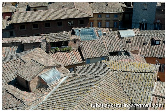 Täytyy tunnustaa, että Siena on vielä minulta näkemättä, mutta Firenzeen olen ihastunut kyllä. Tai oikeammin kaikkiin saapasmaan kaupunkeihin. Varsinkin nuo katot kertovat mielestäni erinomaisesti koko saapasmaan tavasta elää ja olla: sikin sokin kaikki ihanasti yhdessä!